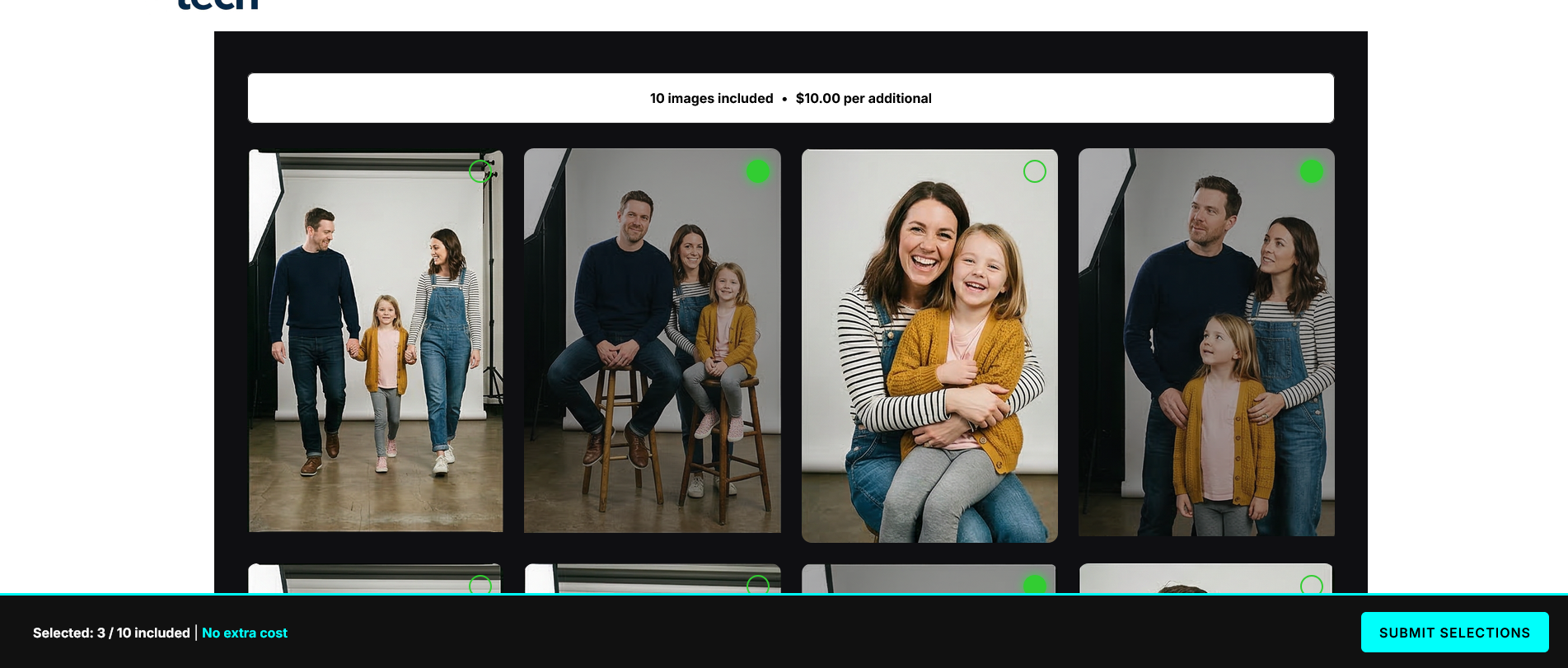 Free vs. paid selections Set a free image limit per gallery and offer additional images as a paid upsell.