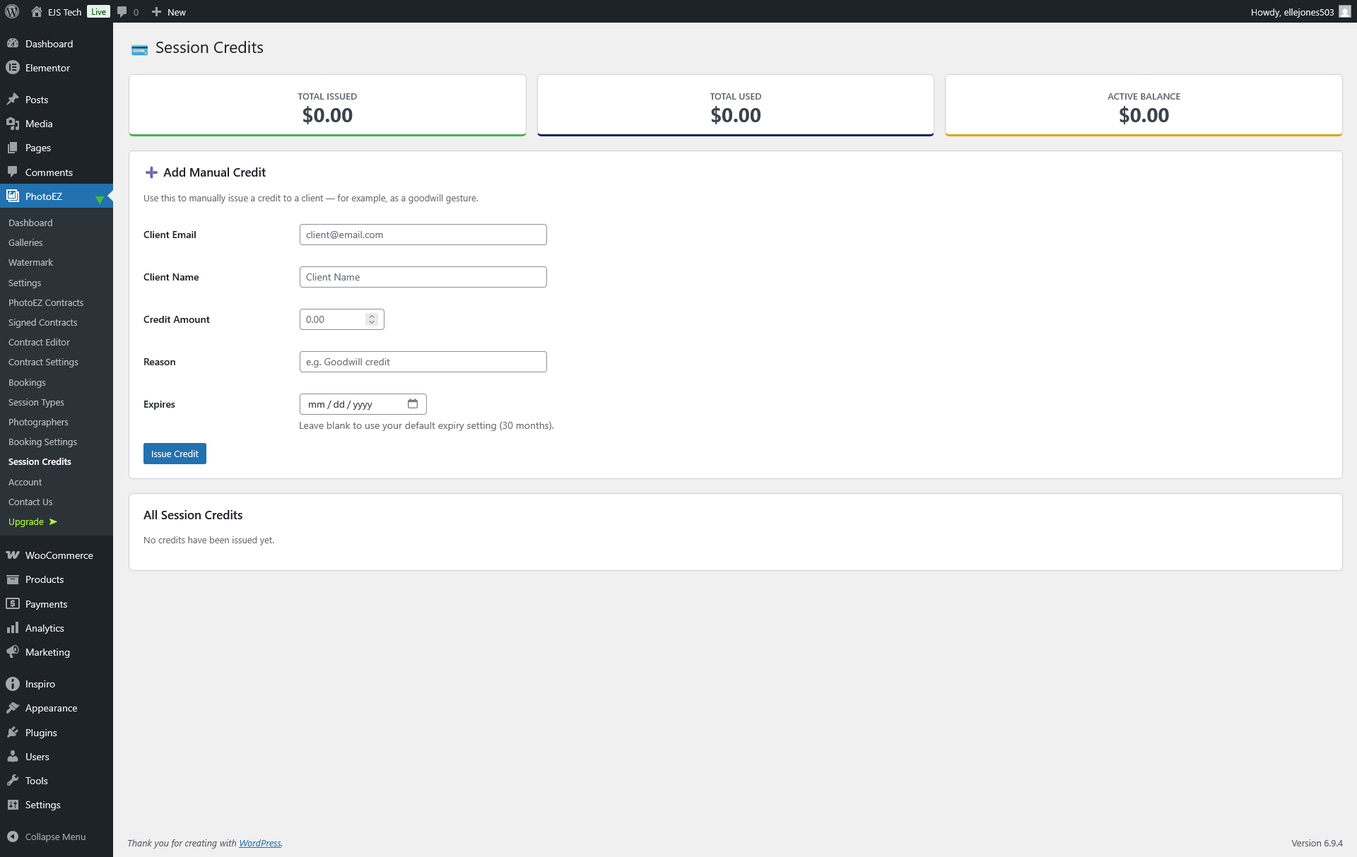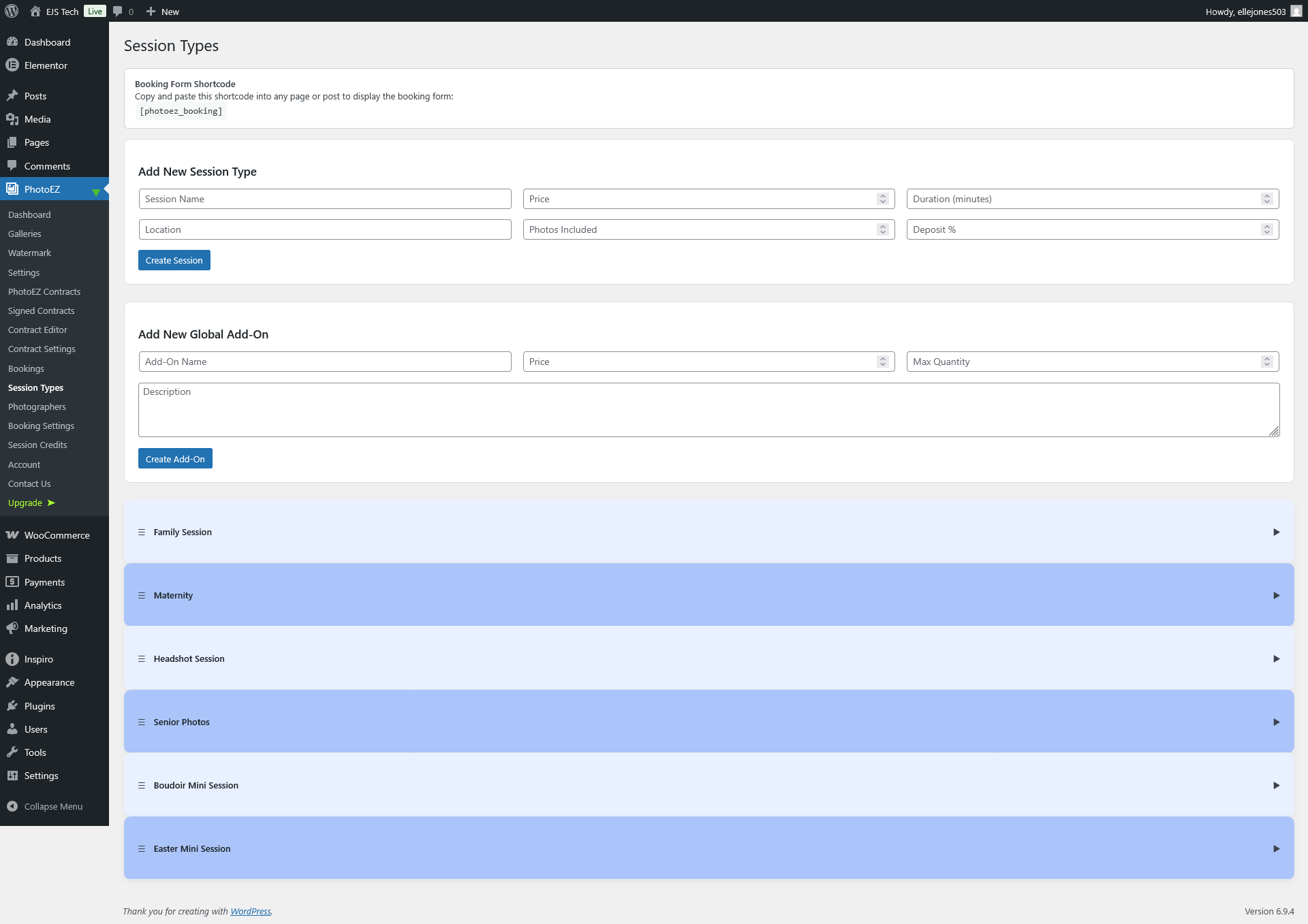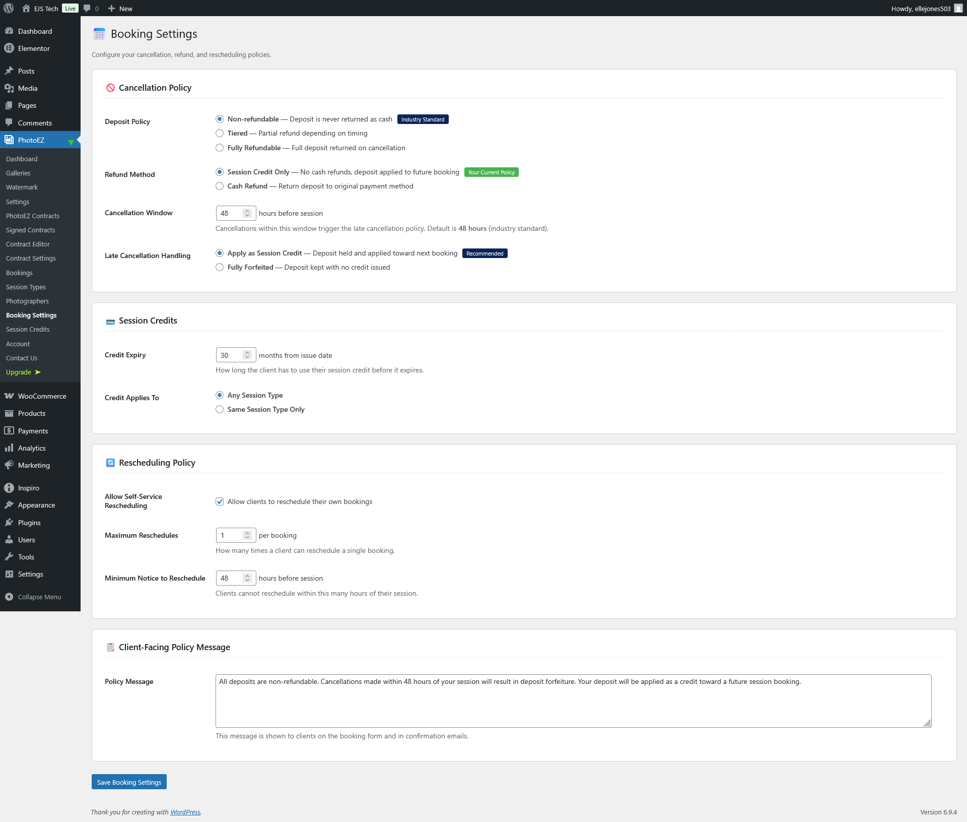 Requires both PhotoEZ core and PhotoEZ Booking Addon to be active