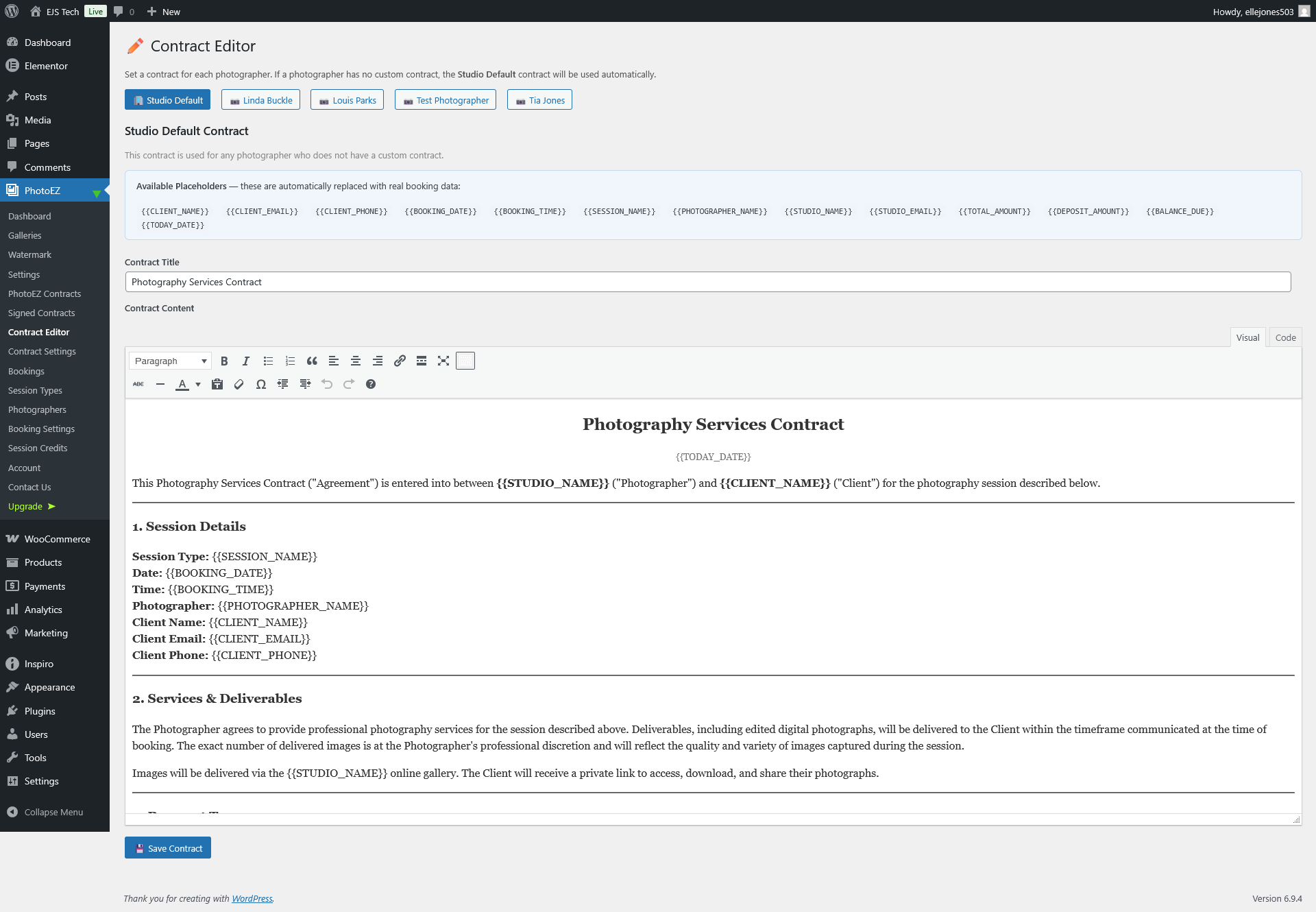 Each photographer in the system can have their own individual contract tailored to their specific terms